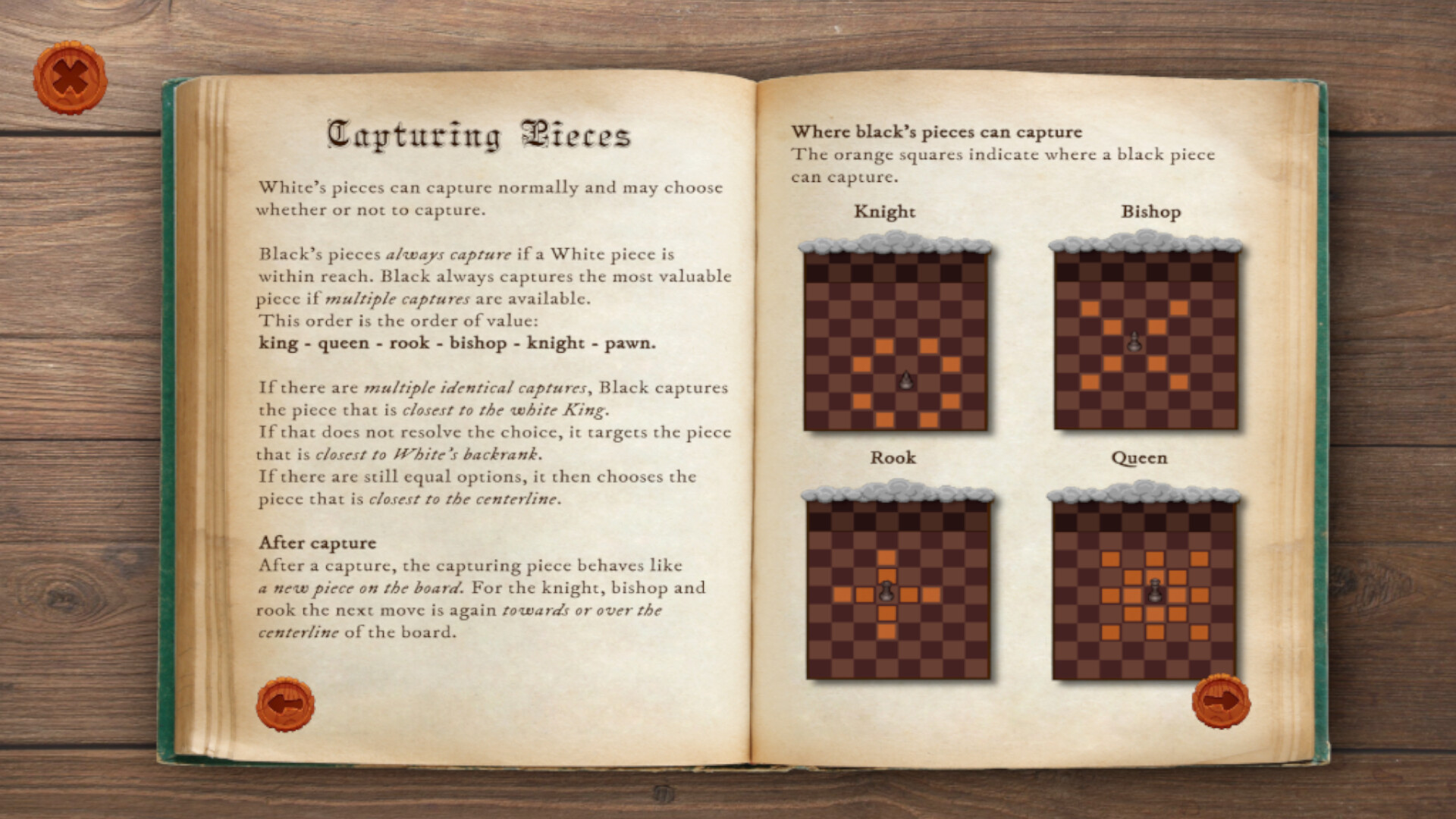 The game is played on a 10x8 board. On the 9th and 10th preview rank we can see the next wave incoming, but the pieces only move on the 8x8 board. Black's pieces move according to a fixed move order and pattern and they MUST capture if they can. Certain characters in the game may share similarities with real individuals from the world of chess, but any such resemblance is coincidental.