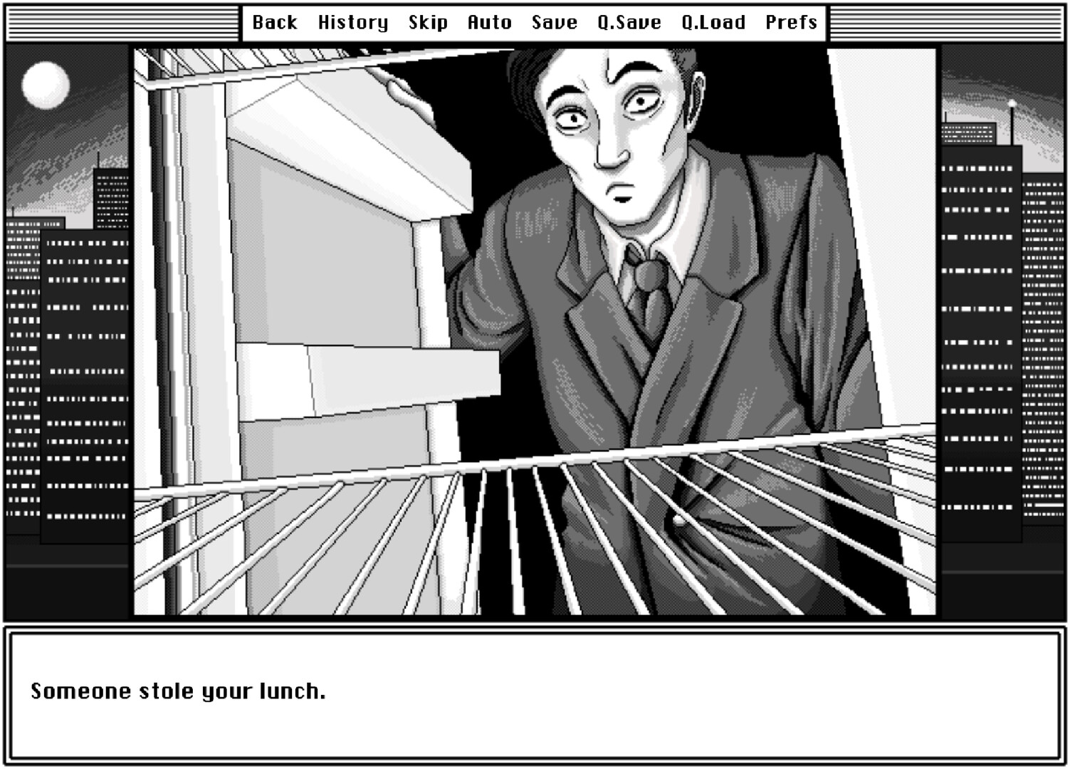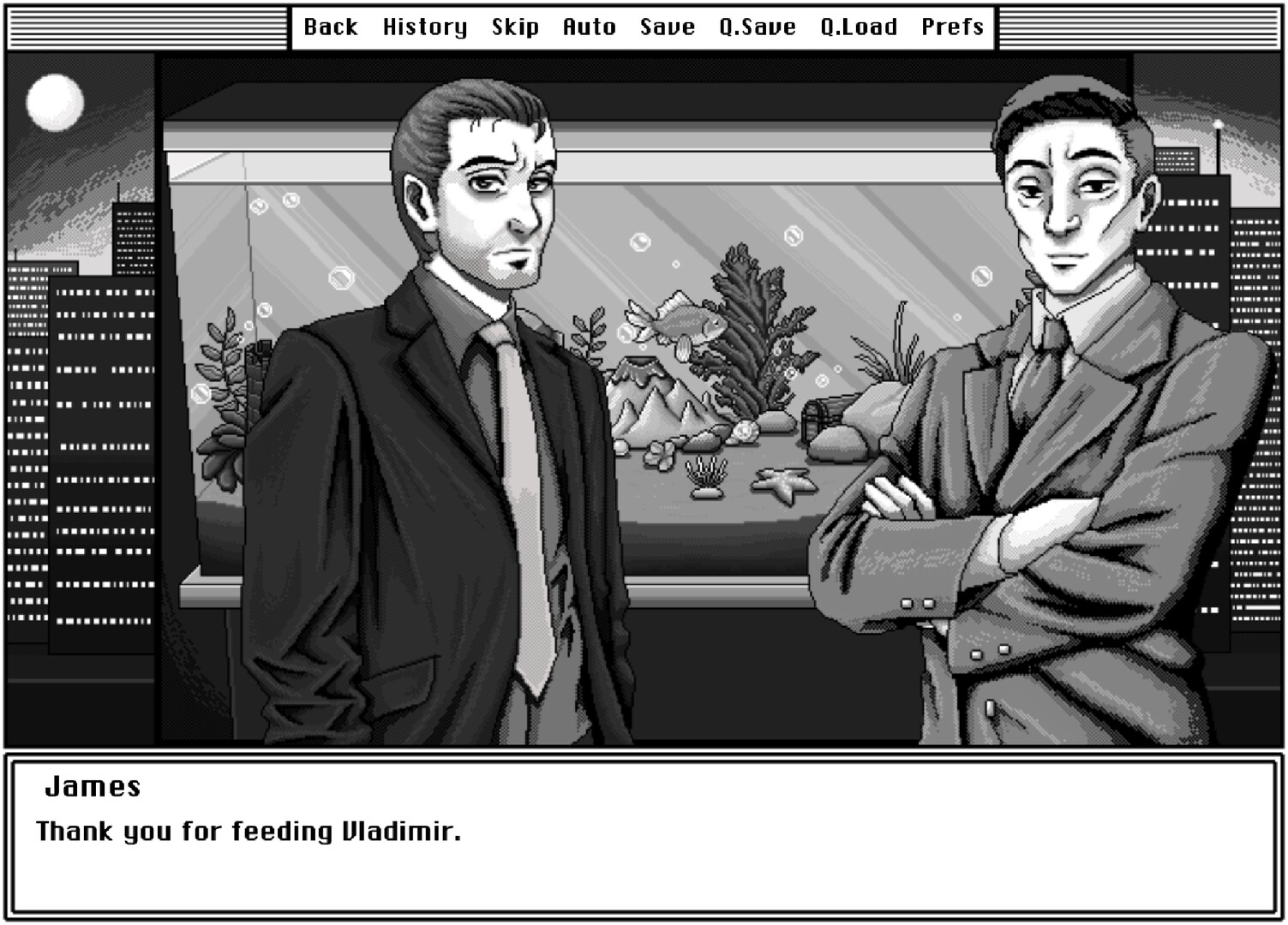 You're James, a middle-aged office worker who just so happens to be vampire. Someone stole your lunch. Find the thief, feed your goldfish, explore the building and DO. NOT. KILL. ANYONE. Easy!