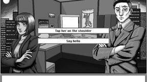 Talk to your coworkers to suss out the thief, feed your goldfish, explore the building and