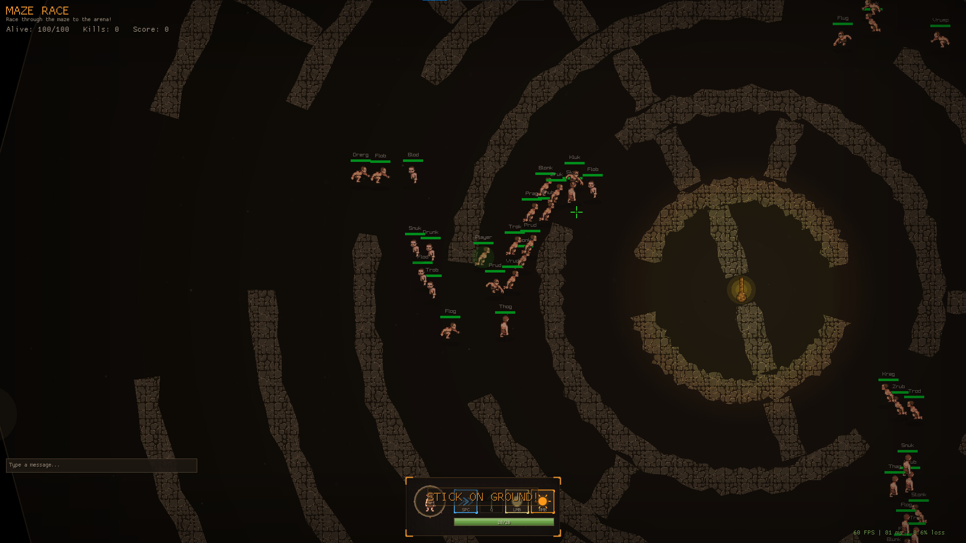 Каждый матч начинается в лабиринте. Первым доберитесь до центра и заберите Палку. Она увеличивает здоровье, скорость и силу ближнего боя, превращая вас в самого сильного игрока -и одновременно в главную цель.