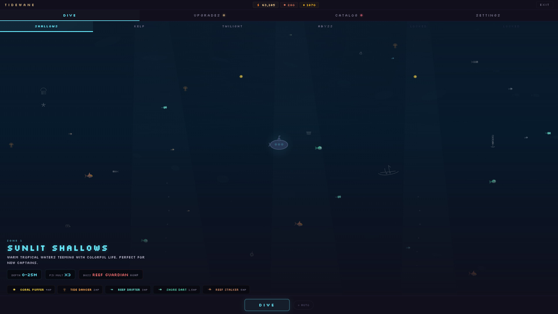 Pilot a submarine into the deep. Kill fish, harvest PSI energy, and defeat 25 bosses across 5 ocean zones. Ascend, transcend, and unlock the Void. A deep-sea idle dungeon crawler with 3 prestige layers, 36 forgeable artifacts, procedural audio, and an ending worth reaching.