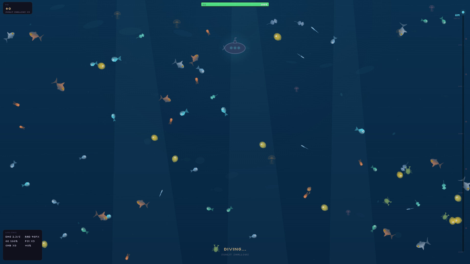 Descend into waters teeming with life. Your submarine auto-attacks nearby targets while you manage oxygen, collect PSI energy, and hunt for treasure. Each dive pushes deeper — how far can you go before the pressure crushes you?