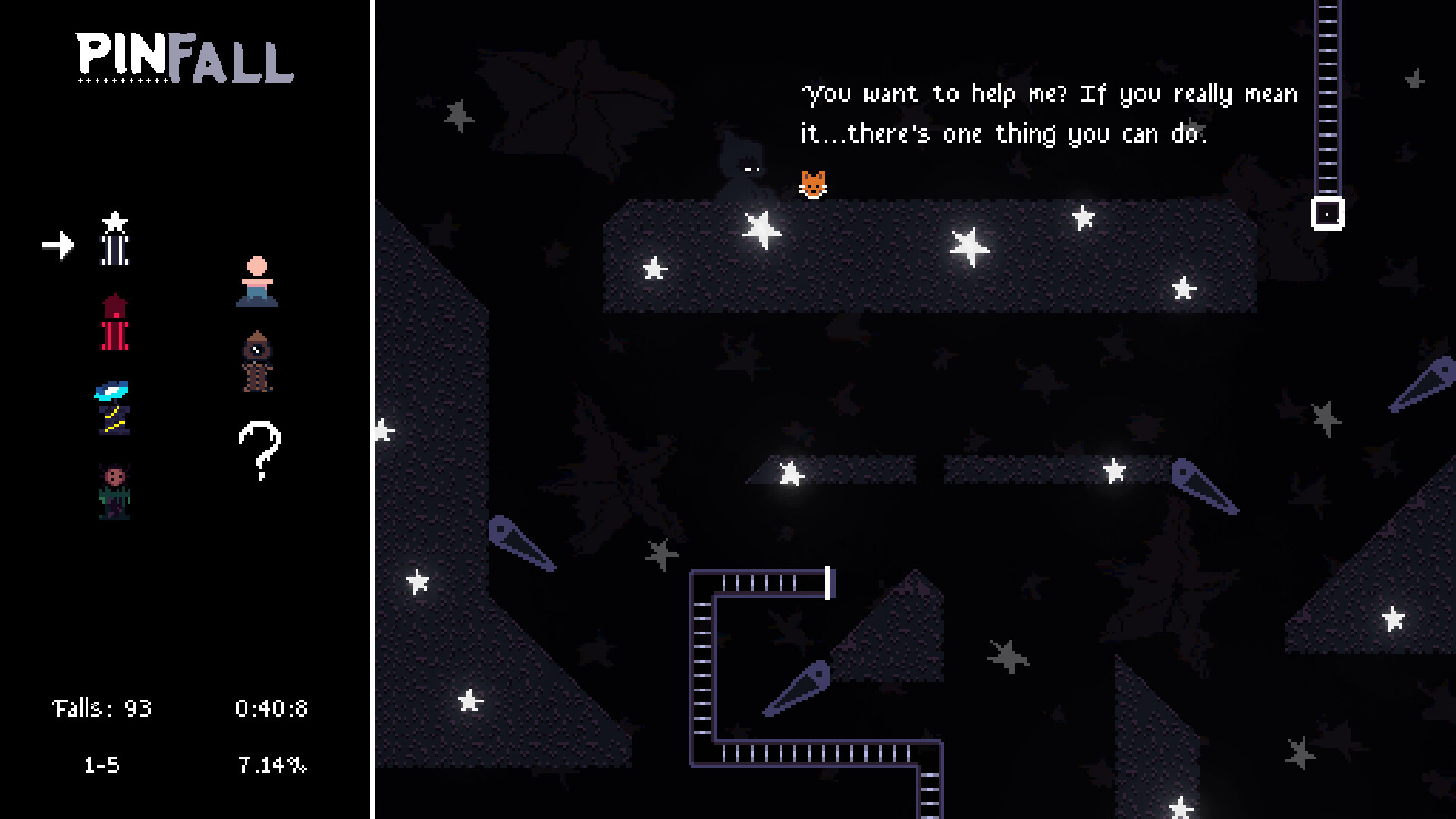 From the center of the Earth to the outskirts of reality, overcome the impossible in Pinfall: An extremely difficult physics-based rage game where losing progress is inevitable. While talking to NPCs, collecting items, and customizing your look, keep climbing as the impending fall awaits...