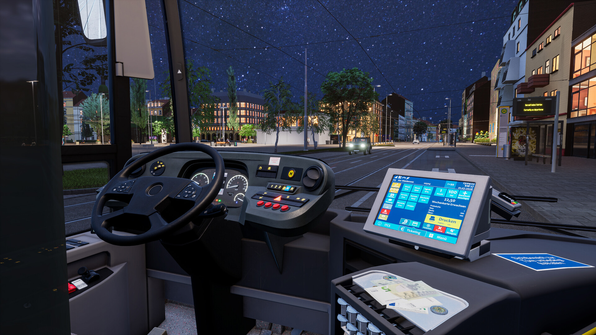 Полностью смоделированная 3D-кабина со всеми ключевыми индикаторами: спидометр, состояние дверей, сообщения о неисправностях и многое другое