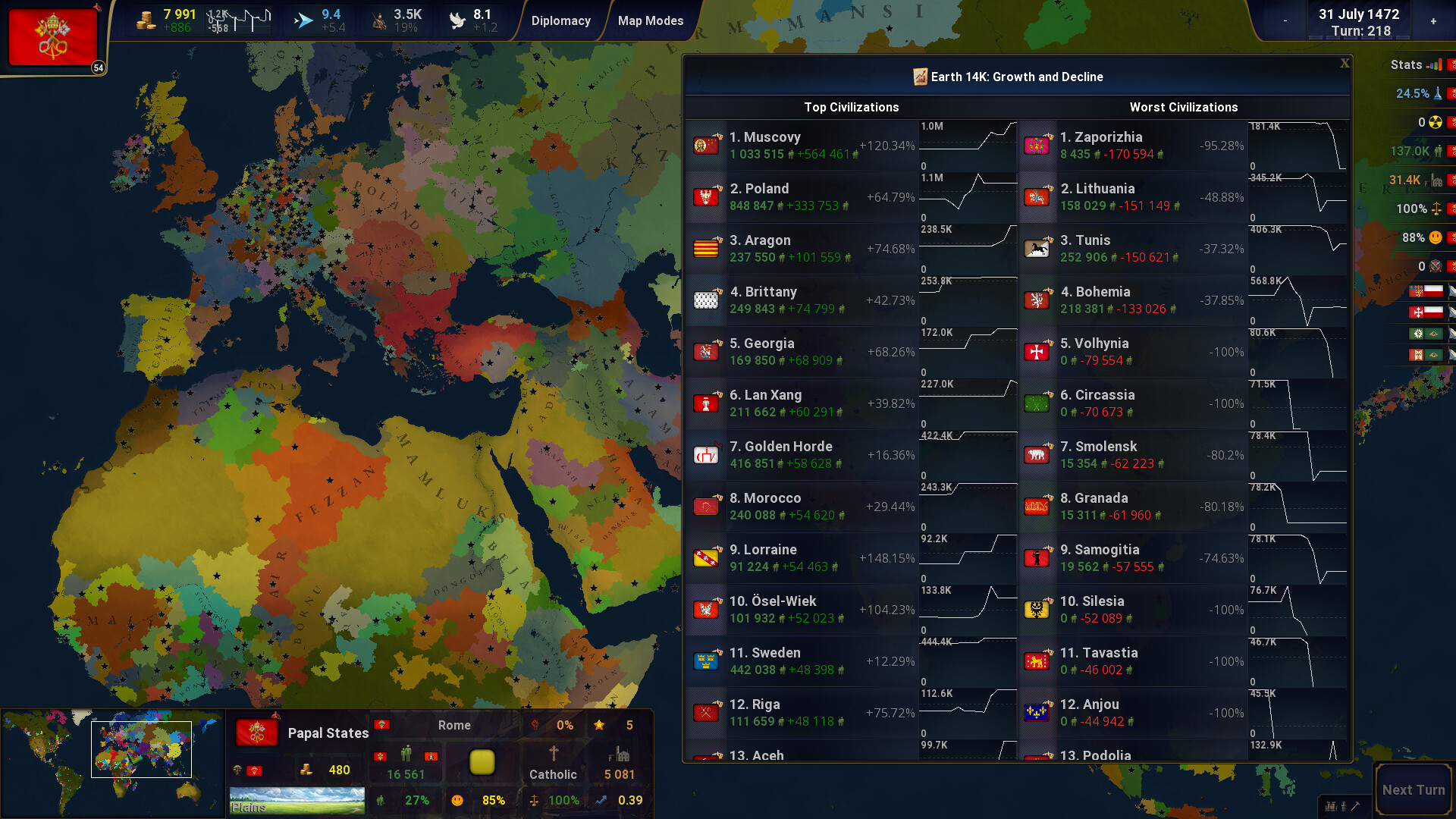 • Массовые действия с провинциями, позволяющие мгновенно инвестировать, строить или ассимилировать все провинции одним кликом.