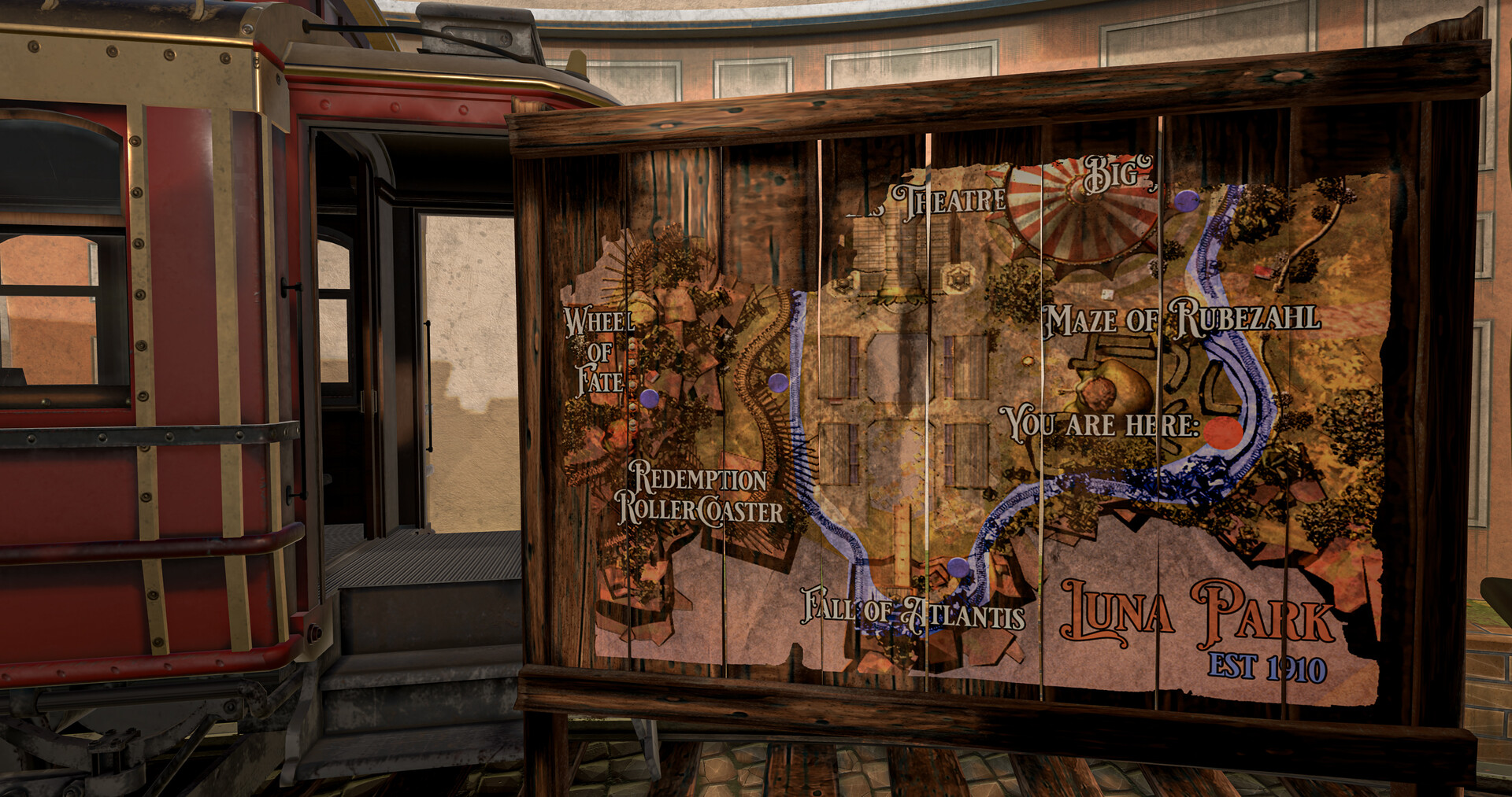 Following her mother’s wishes, Samantha visits the old amusement park left behind by her father for one final inspection: a magnificent maze, the ruins of Atlantis… and of course, a Roller Coaster! Each attraction becomes an opportunity for Samantha to recall fragments of her childhood, marked by the turbulent relationship between her parents, Bridget and Hans. The latter died in the Great War, but still haunts Samantha’s thoughts. The park is heavily inspired by Luna Parks from a 1920s post-war period, providing both the setting and aesthetic of a game in which sorrow and nostalgia are tightly intertwined.