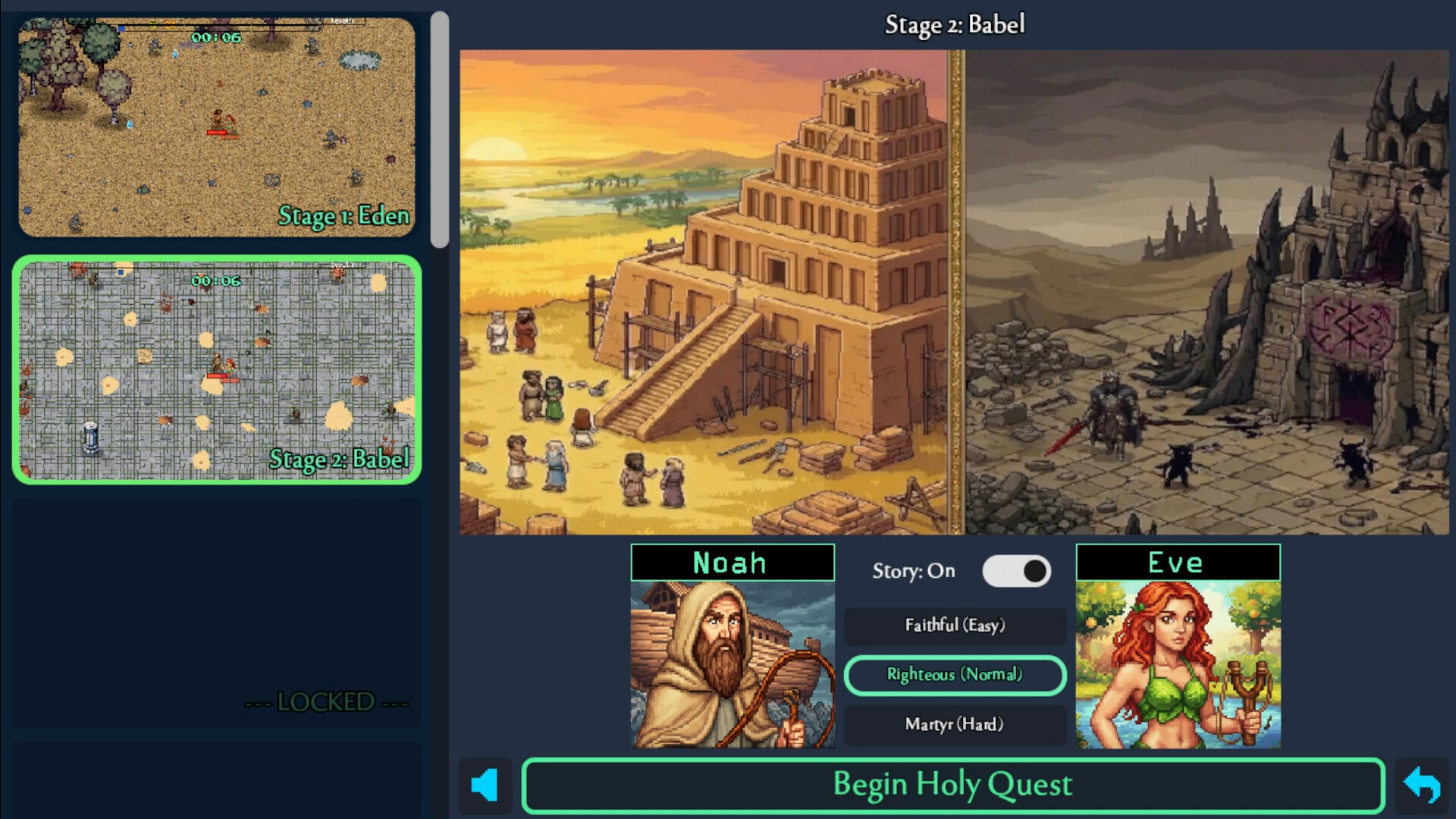 Ancient Wisdom: Test your knowledge between the carnage. Encounter optional Bible Trivia moments to earn small bonuses and deepen your connection to the Word as you fight through the Apocalypse.