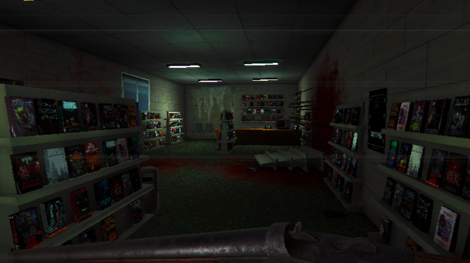 BLOOD MALL: RETAPED is a short first-person dinosaur horror game inspired by the pulpy B-movie creature features of the 1980s, and the works of Puppet Combo. Take control of a big game hunter-turned-rookie cop, sent in to deal with a unique prehistoric threat that has turned the Dayton County Mall into a blood-soaked hell.