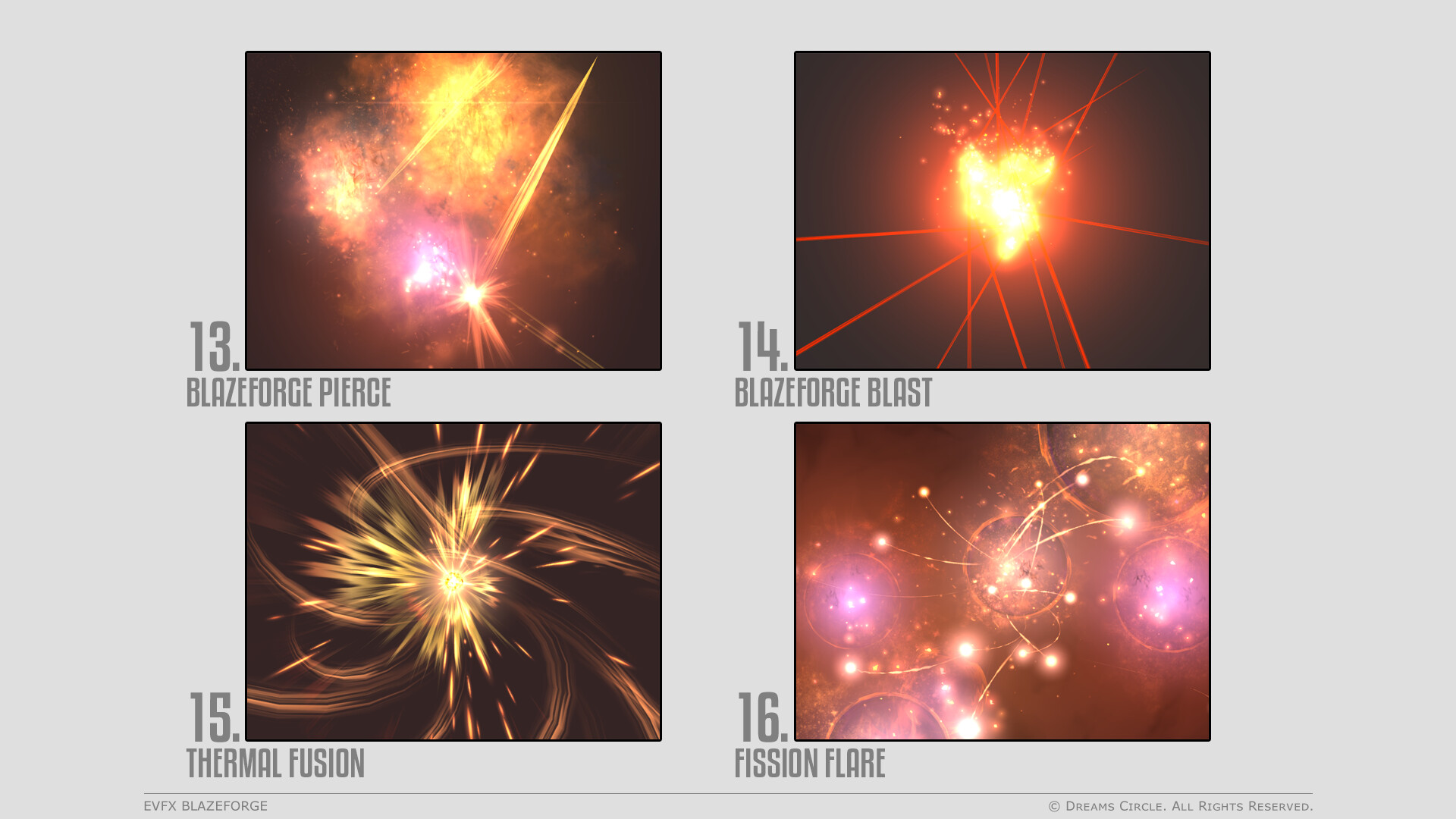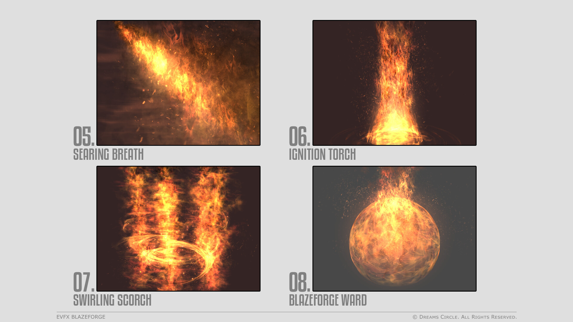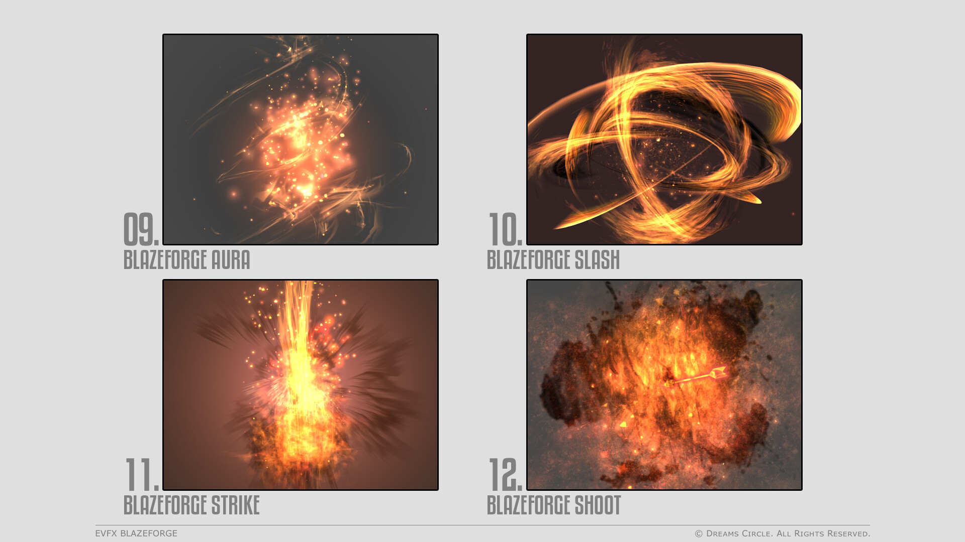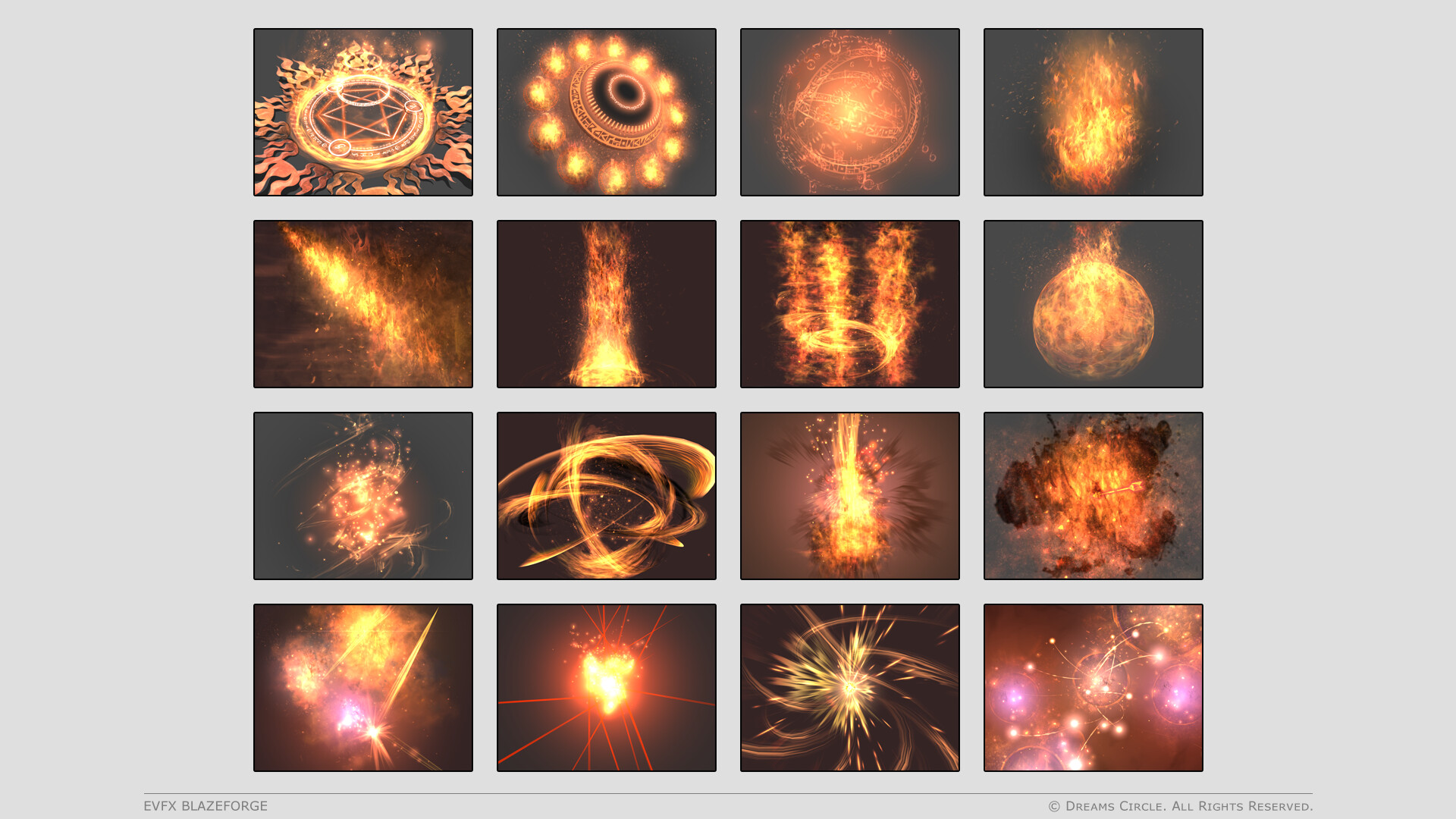 Designed by Dreams Circle, a team specializing in high-quality game assets, "EVFX Blazeforge" features 16 gorgeous visual effects AND complementary sound effects, allowing you to add that professional polish to your projects easier than ever before and awe your audience!