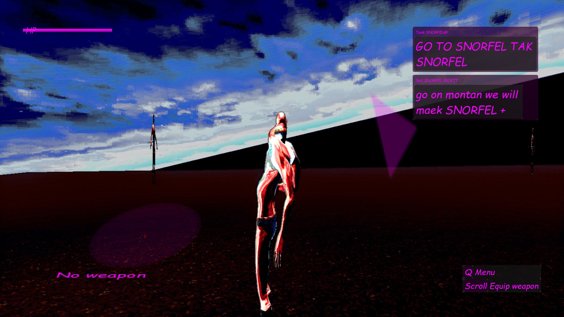 "hEvEN oN sNOrF" is a dysfunctional bug-full multiplayer cacophony. Deliver "sNOrF", collect "HEPI" and unlock "hEVEN" in a PvP world and reconsider your life choices.