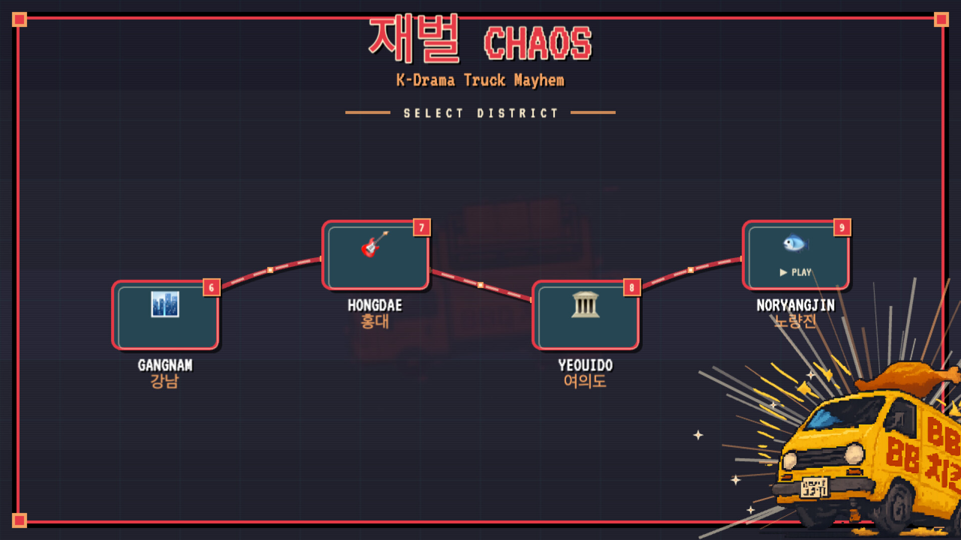 Chaebol Chaos — сатирическая физическая экшн-игра, где Angry Birds встречается с выходной к-дорамой. Нажимай, чтобы запускать фургоны доставки с кимчи, курицей и раменом в лимузины, пентхаусы и председателей в костюмах — 25 уровней нарастающего корпоративного хаоса.