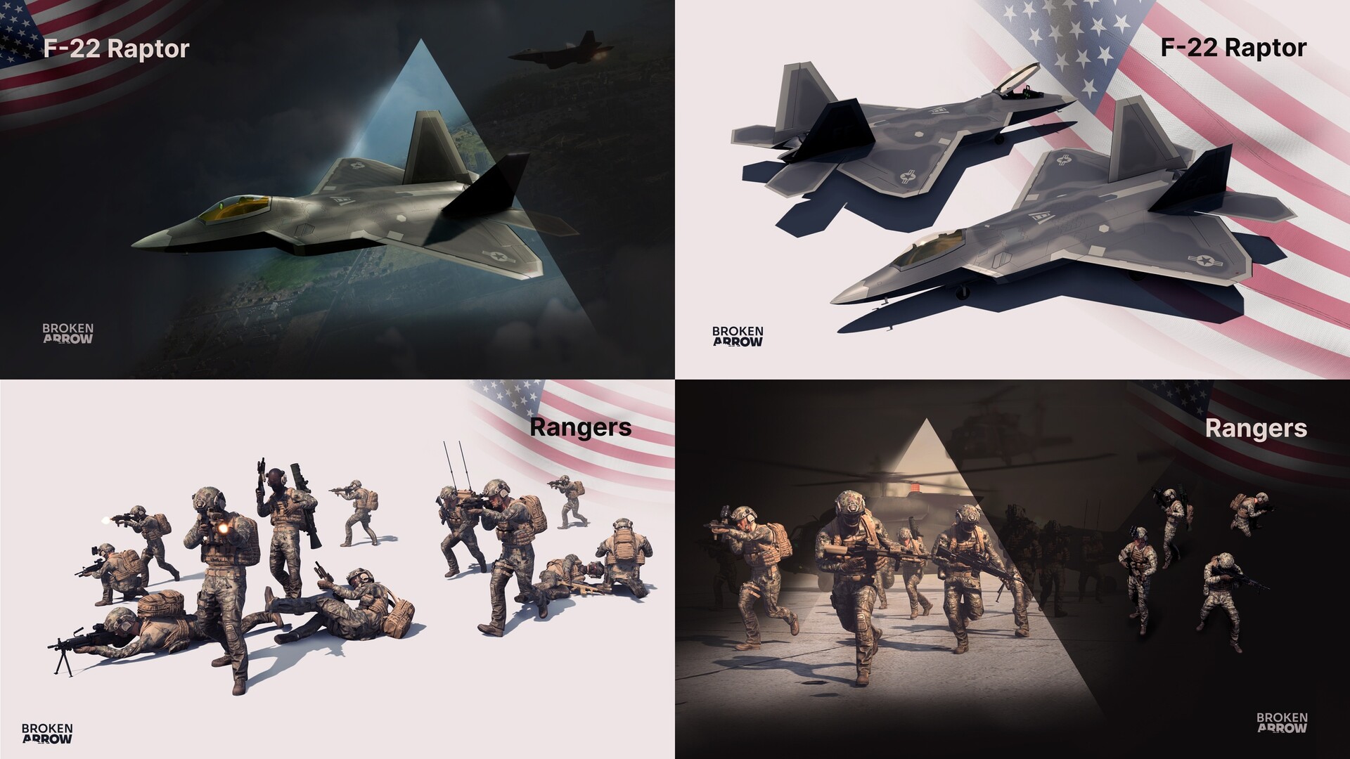 Broken Arrow - это крупномасштабная тактическая игра о современной войне в реальном времени. В базовой игре представлены американская и российская фракции, каждая из которых содержит уникальные специализации, такие как морская пехота, танковые войска, 5 мотострелки, воздушно-десантные войска и другие.